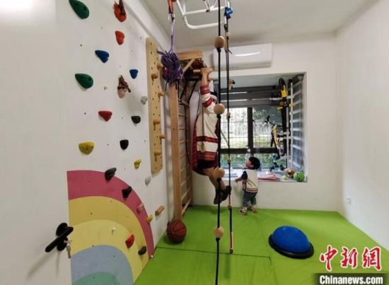 4月1日,廣西南寧,沙部·魯比在家中打造微型“運動場”。當天,在桂臺灣教師沙部·魯比喬遷新居,實現(xiàn)跨越海峽的“安居夢”。 中新社記者 張廣權(quán) 攝