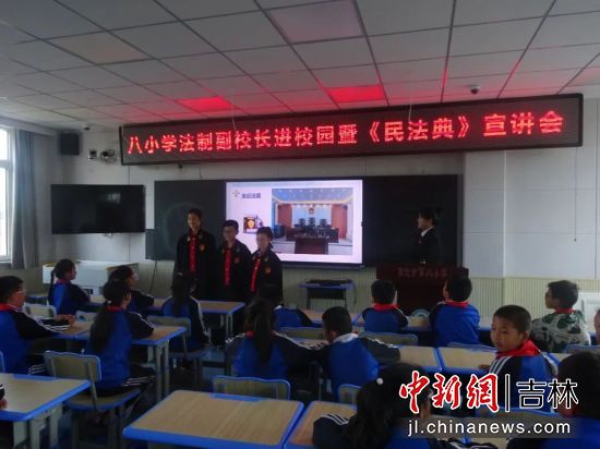 中新網(wǎng)吉林新聞6月1日電 (譚偉旗 孟鴿)為加大《中華人民共和國民法典》宣傳普及力度,營造尊法、學(xué)法、守法、用法的良好校園氛圍,近日,敦化基層林區(qū)法院民事審判團(tuán)隊(duì)法官干警走進(jìn)敦化市第八小學(xué),深入課堂為師生們開展了一場《民法典》知識(shí)宣傳教育主題講座。