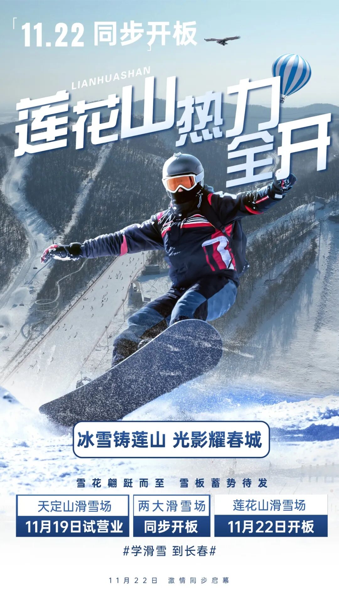 今冬長(zhǎng)春,“學(xué)滑雪到長(zhǎng)春”口號(hào)響亮,點(diǎn)燃雪友熱情。據(jù)長(zhǎng)春蓮花山度假區(qū)旅游局官方微信消息,北國(guó)春城兩顆明珠——蓮花山與天定山兩大滑雪場(chǎng),定于11月22日同步開(kāi)板。天定山滑雪場(chǎng)更是于19日試營(yíng)業(yè)。