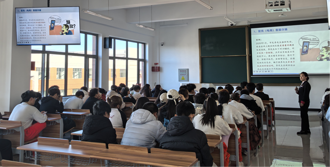 活動現(xiàn)場,臨河街支行的工作人員結(jié)合高校校園詐騙的高發(fā)特點,以通俗易懂的語言為師生們帶來了一場干貨十足的反詐宣講。宣講環(huán)節(jié)中,工作人員首先從“什么是電信網(wǎng)絡(luò)詐騙”切入,系統(tǒng)講解了電信網(wǎng)絡(luò)詐騙的定義、常見類型及隱蔽性、迷惑性特點,讓師生們對這類違法犯罪行為建立起清晰認知。隨后,通過“以案說詐”的形式,工作人員選取了近年來高發(fā)的校園貸、刷單返利、冒充老師同學借錢、虛假購物退款等典型詐騙案例,深入剖析了詐騙分子的作案手法、話術(shù)陷阱以及受害者的受騙心理,用真實案例敲響安全警鐘,讓師生們直觀感受詐騙的危害性。