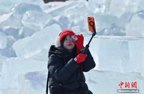 長(zhǎng)春打造“藍(lán)冰”景觀 市民打卡體驗(yàn)“冰川世界”