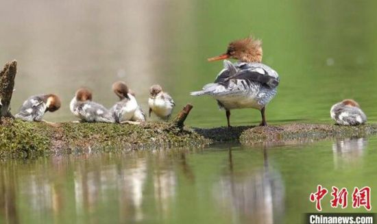 在吉林園池濕地國家級自然保護(hù)區(qū)頭道白河支流,工作人員監(jiān)測到40多只中華秋沙鴨,4個天然巢、14個仿生巢都有中華秋沙鴨入住。該保護(hù)區(qū)管理局資源科科長韓銘介紹,已有5個巢成功完成孵化,新跳巢雛鳥數(shù)量有51只,其他巢的中華秋沙鴨也在孵化中。