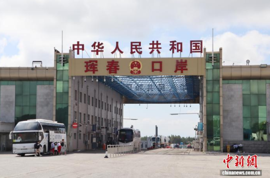 7月19日,吉林琿春,運輸?shù)弁跣返目ㄜ嚺抨犎腙P。 中新社記者 蔣文月 攝