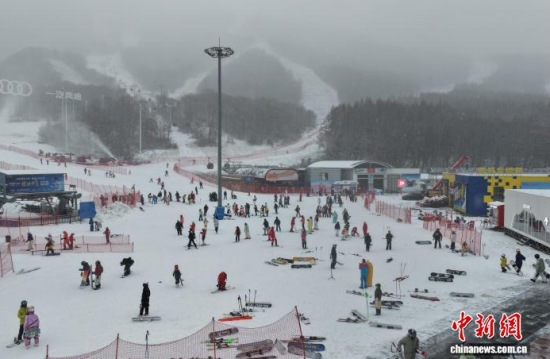 眾多滑雪愛(ài)好者來(lái)到吉林北大湖雪場(chǎng)!〖质斜┰囼(yàn)區(qū)北大湖雪場(chǎng)供圖