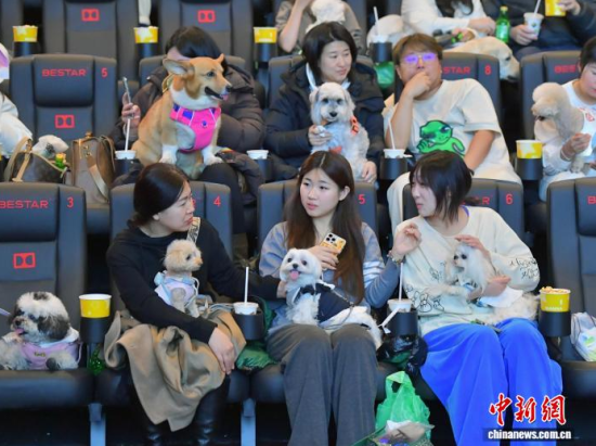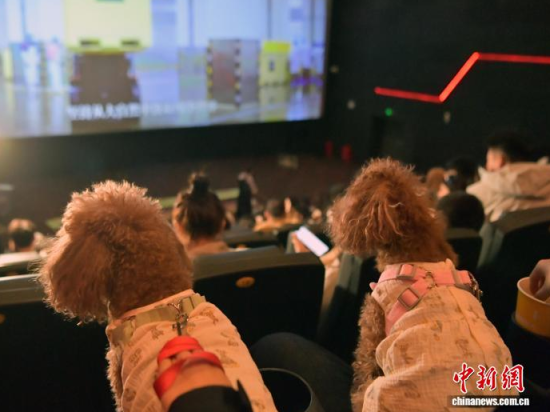 12月5日晚,吉林長春,兩只“汪星人”在觀影。近日,吉林長春一家影院創(chuàng)新推出“寵物陪伴觀影”特色專場,吸引不少市民帶著愛寵一同走進電影院,共享觀影樂趣。為提升“人寵共處”的體驗,影院專門對場內(nèi)光線與音量進行了適應(yīng)性調(diào)整,并提前備好寵物坐墊、尿不濕等應(yīng)急物品,力求為寵物和主人打造一個舒適、安心的觀影環(huán)境。中新社記者 張瑤 攝