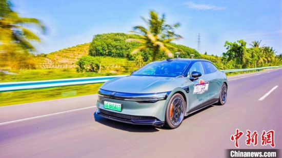 4月12日,在海南東線高速進(jìn)行“極智長(zhǎng)測(cè)”測(cè)試的新能源汽車。孟子瀟 供圖