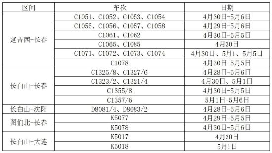 記者從延吉車務(wù)段了解到,今年“五一”假期鐵路運(yùn)輸期限自4月29日至5月6日止,為期8天。為滿足廣大旅客出行需求,該段科學(xué)調(diào)配運(yùn)力,優(yōu)化列車開行方案,計(jì)劃加開長春、沈陽等方向旅客列車14.5對,其中普速列車2對、高鐵列車12.5對。