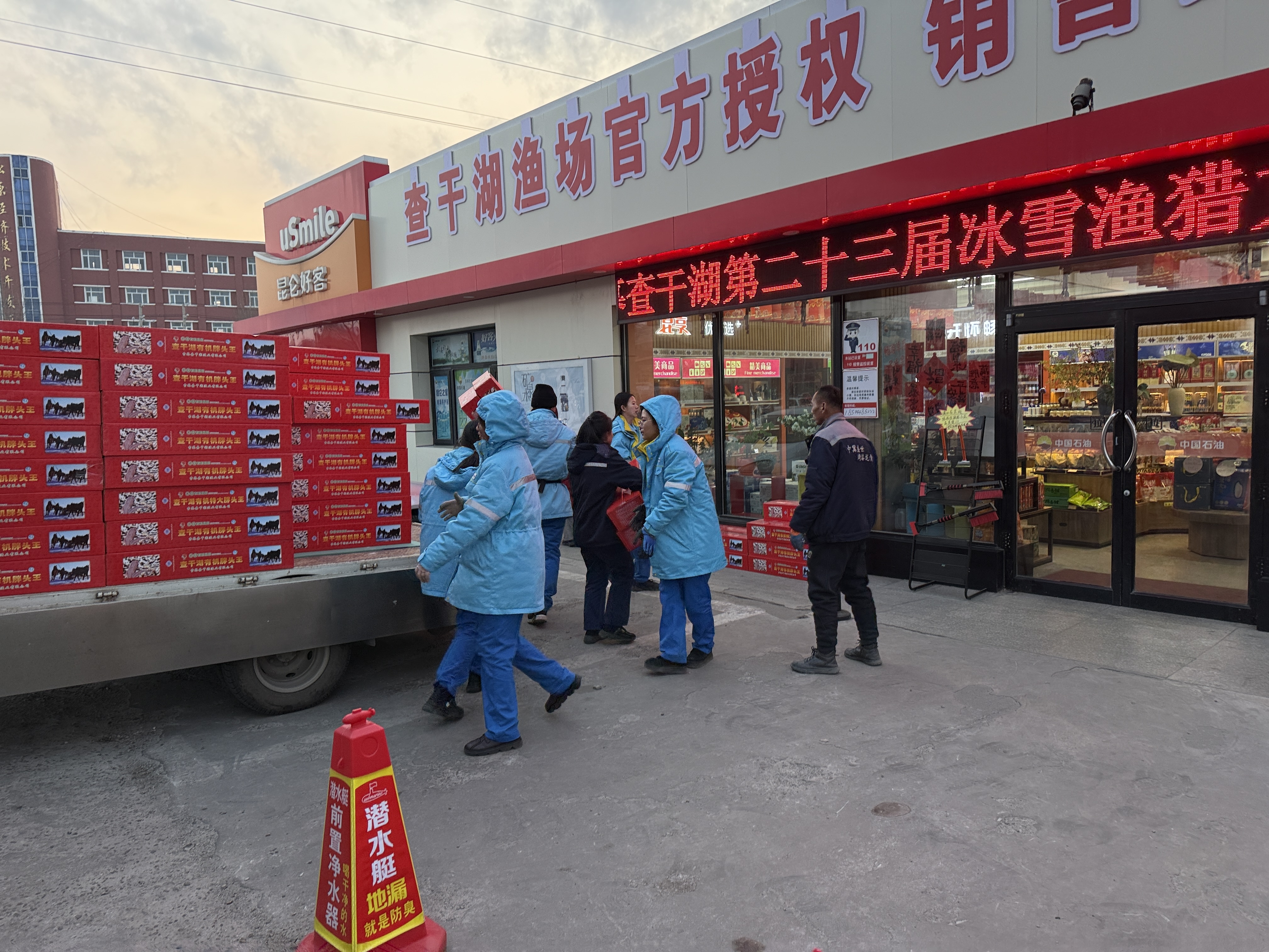 松原分公司鏡湖加油站查干湖魚熱賣。中國(guó)石油吉林銷售公司/供圖