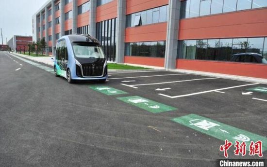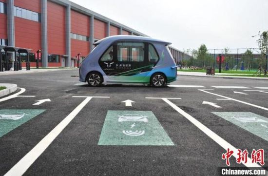 一輛新能源電動(dòng)車駛過(guò)高功率動(dòng)態(tài)無(wú)線充電道路系統(tǒng)的泊車位!