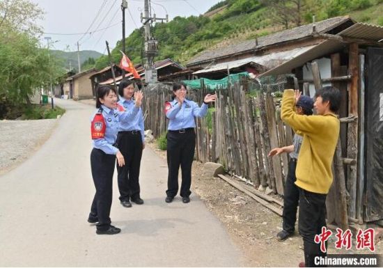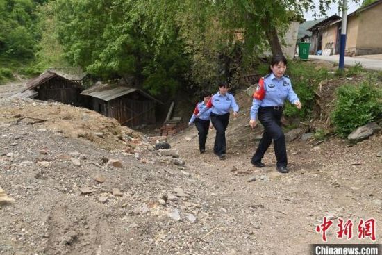 “女子警務團”來到村里走訪。崔藝琳(右一)說,轄區(qū)里很多村子道路難行,但從沒阻止她們前行的腳步。 張瑤 攝