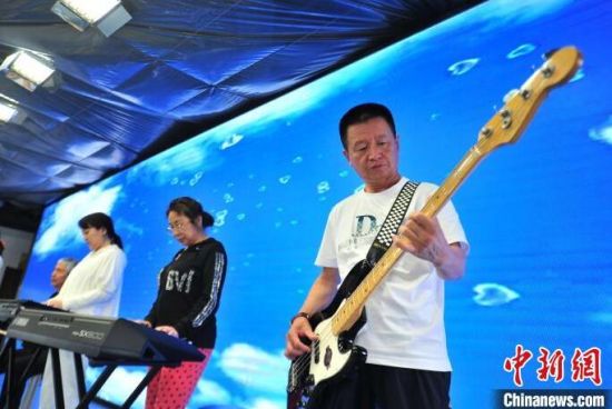7月4日,吉林長春,火焰老年樂隊在演奏搖滾樂。這支樂隊有7名樂手和7名主唱,平均年齡62歲,是吉林省為數(shù)不多的老年搖滾樂隊。他們在激昂的樂聲中實現(xiàn)自己的搖滾夢,尋回年輕的感覺。