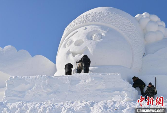 12月11日,吉林長春,工作人員正在長春冰雪新天地緊張施工。今年長春冰雪新天地總占地面積達到156萬平方米,冰雪雕塑200組創(chuàng)歷屆之最,并設(shè)置1314米的空中雪漂流、520米的冰滑梯等設(shè)施供中外游客游玩。中新社記者 張瑤 攝