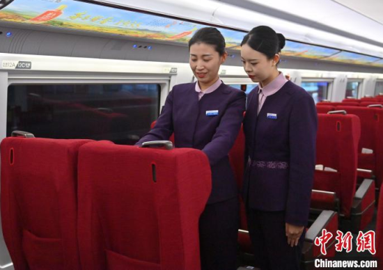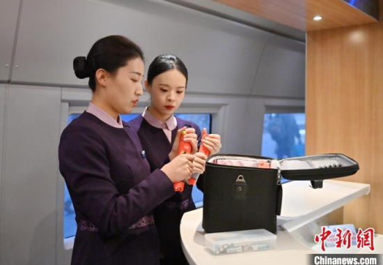 1月7日,吉林長春,“動姐”在進行安全知識培訓(xùn)。春運臨近,為提升服務(wù)品質(zhì),沈陽局集團公司長春客運段動車一隊的乘務(wù)員們利用業(yè)余時間開展基礎(chǔ)禮儀、職業(yè)形象、服務(wù)技巧等內(nèi)容的培訓(xùn)。中新社記者 張瑤 攝