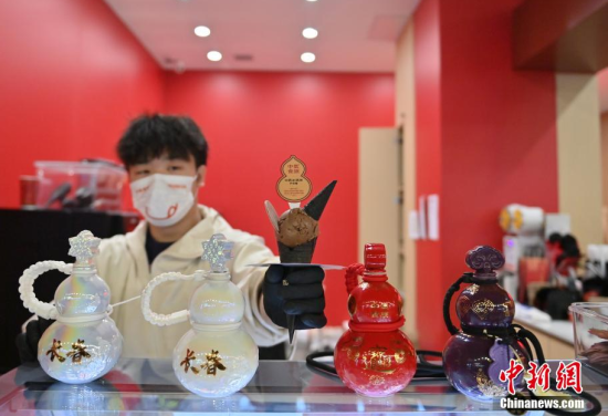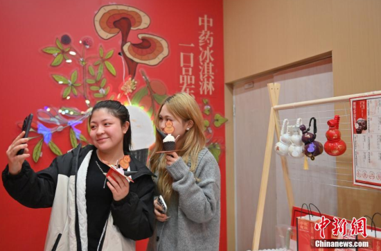 3月12日,在長(zhǎng)春一家商場(chǎng)的中藥甜品店,工作人員在舀取中藥冰淇淋。這家中藥甜品店將刺五加、人參、靈芝等中藥與傳統(tǒng)甜品相結(jié)合,推出了中藥冰淇淋、中藥茶飲等產(chǎn)品,吸引大量民眾體驗(yàn)。(中新社記者 張瑤/攝)