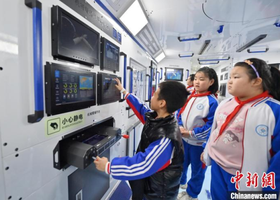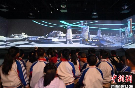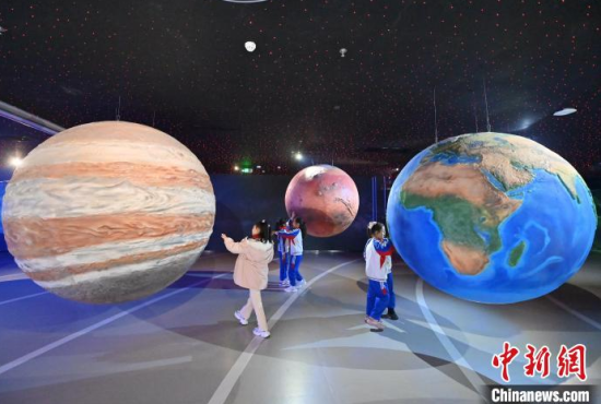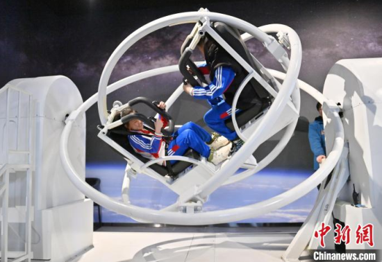 4月9日,吉林長春,小朋友在參觀航天服模型。中國航天日臨近,不少小朋友來到筑夢星辰(長春)航天科教文旅館,通過互動(dòng)體驗(yàn)學(xué)習(xí)航天知識,探索宇宙的奧秘。中新社記者 張瑤 攝