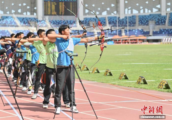 8月21日,吉林長春,運動員參加比賽。 當(dāng)日,2025年全國射箭U16、U18錦標(biāo)賽在長春開賽,中國各地96支射箭隊的721名運動員張弓搭箭,一較高下。 中新社記者 張瑤 攝