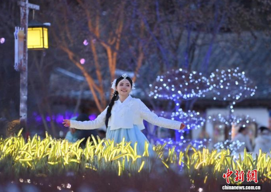 12月2日,在吉林省延邊州延吉市中國(guó)朝鮮族民俗園內(nèi),游客身著朝鮮族服飾拍照。作為中國(guó)唯一的朝鮮族自治州和最大朝鮮族聚居地,延邊近年旅游熱度持續(xù)攀升,朝鮮族服飾旅拍已成為當(dāng)?shù)刈钍軞g迎的旅游體驗(yàn)之一。盡管遭遇降溫降雪天氣,游客熱情依然不減,在銀裝素裹的園中定格獨(dú)具民族風(fēng)情的畫(huà)面。中新社記者 張瑤 攝