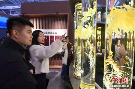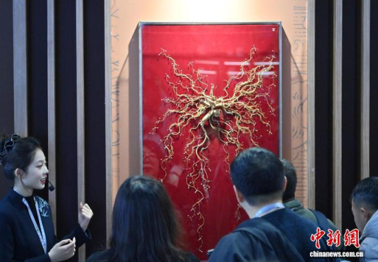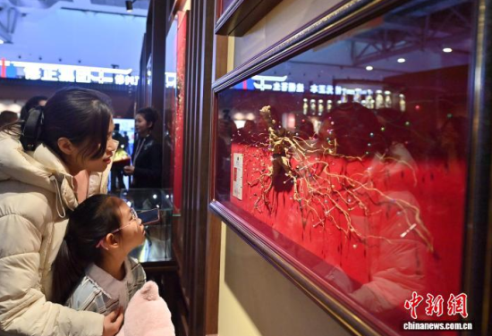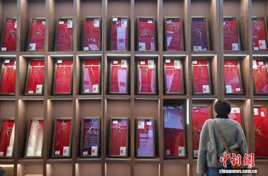 12月7日,吉林長(zhǎng)春,參觀者在參觀人參。當(dāng)日,2025長(zhǎng)春國(guó)際醫(yī)藥健康產(chǎn)業(yè)博覽會(huì)開幕,具有當(dāng)?shù)靥厣那暌吧絽、人參?biāo)本在人參展區(qū)展出,吸引了參觀者的目光。中新社記者 張瑤 攝