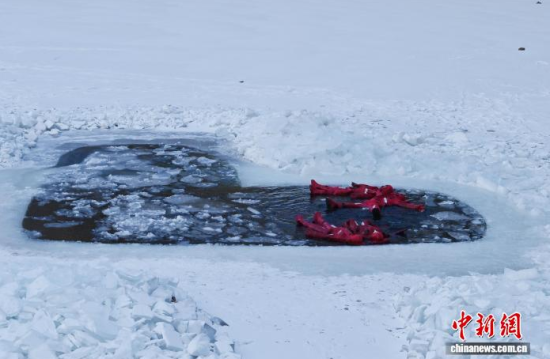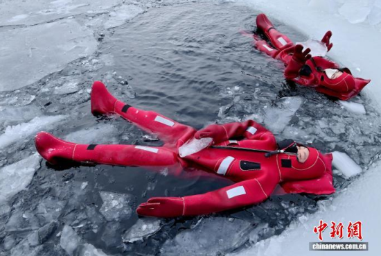 2月5日,吉林省長春市,一項獨特的冰浮項目吸引眾多游客前來體驗。在嚴(yán)寒天氣中,參與者身穿醒目的紅色浮力裝備,悠然漂浮于冰面之上,感受別致的冰雪樂趣。圖為游客在下水前拍照留念。中新社記者 張瑤 攝