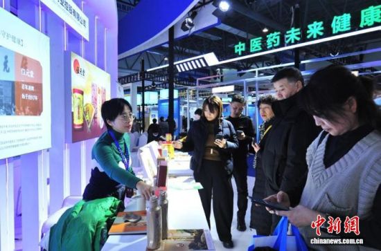 2024年12月8日,2024長(zhǎng)春國(guó)際醫(yī)藥健康產(chǎn)業(yè)博覽會(huì)上,展商在推介商品。(資料圖) 張瑤 攝